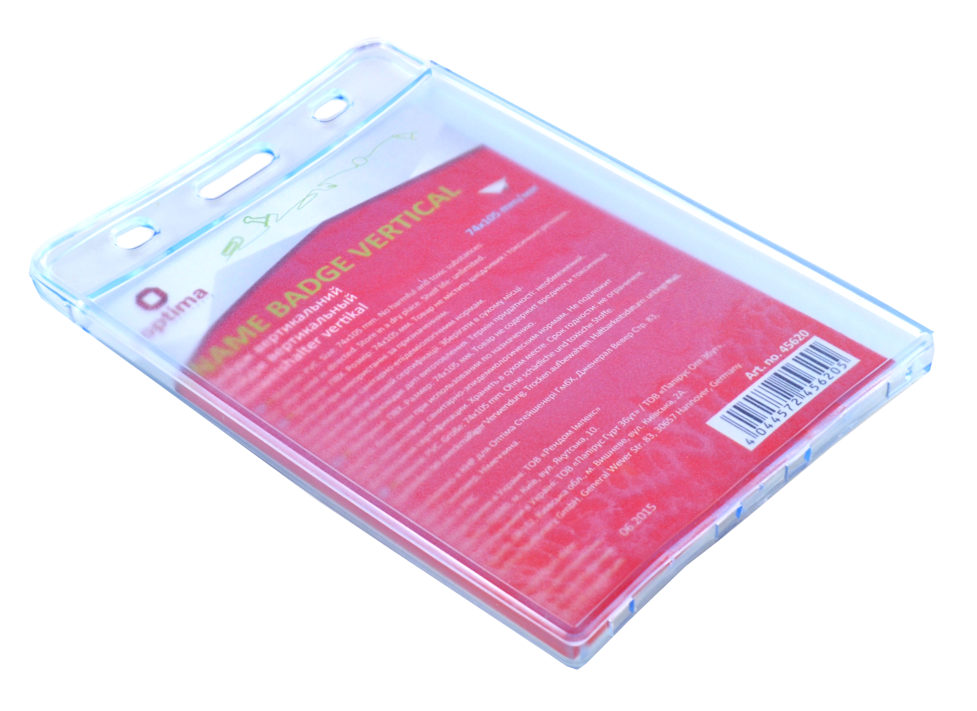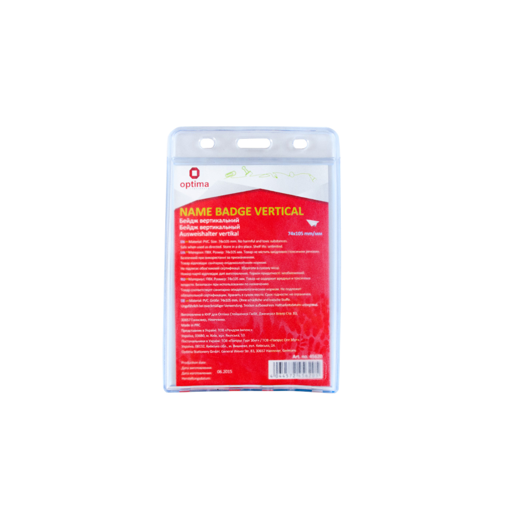 Бейджик О45620 вертикальний 90*54мм без кліпу Optima