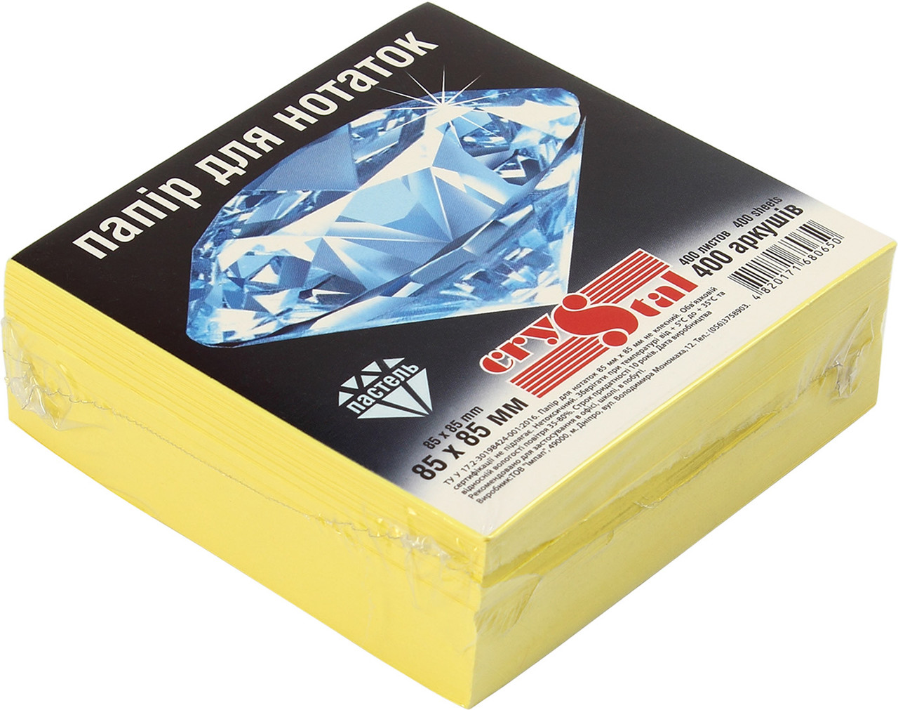 Блок для запису 85*85 мм 400 арк 33.8 Crystal жовтий