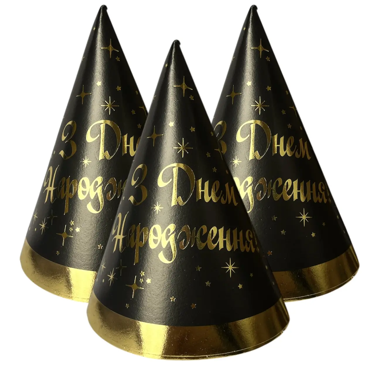 Ковпачки 10 шт З Днем Народження золотим на чорному