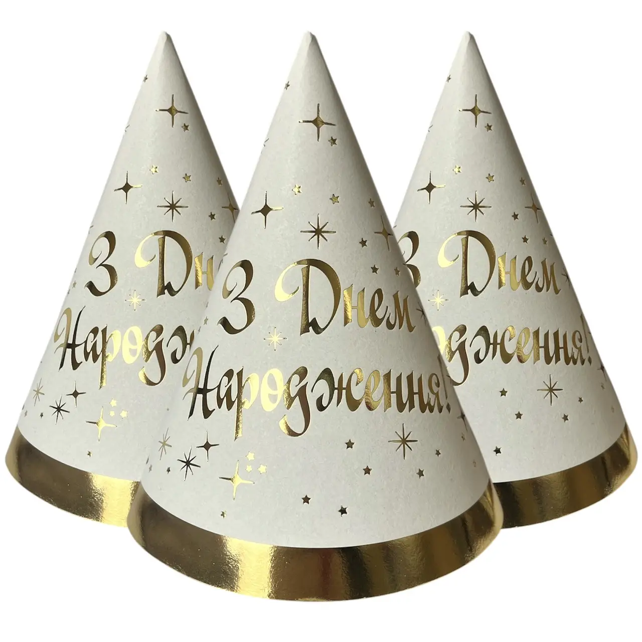 Ковпачки 10 шт З Днем Народження золотим на білому