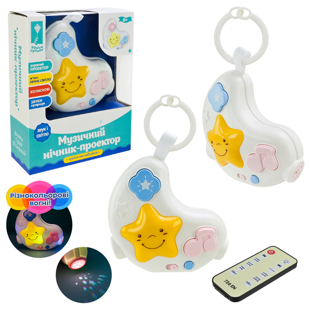 Нічник з пультом керування проектор зоряне небо музика в коробці 17,5*6,5*21 см PL-724-07