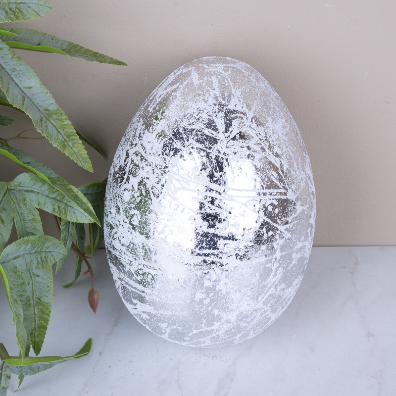 Яйце страусине 15*10,7 см №4083 срібло ретро